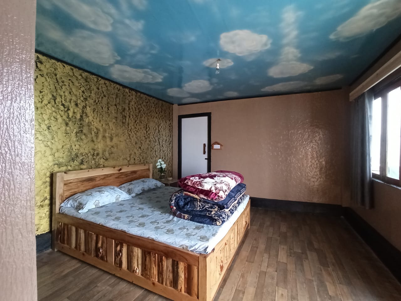 Our homestay features one Double bed room and one family four bed room on first floor. Both rooms are equipped with western-style bathrooms, hot water arrangements and comfortable bedding. Guests can enjoy panoramic views of the forest and snow-capped peaks directly from our terrace adjacent to our rooms. Our kitchen prioritizes organic, locally sourced ingredients, served in a dedicated dining room. To enhance your stay, we offer guided forest treks, local sightseeing in our private vehicle, and evening campfires complete with barbecue.