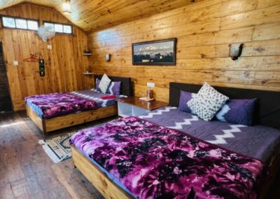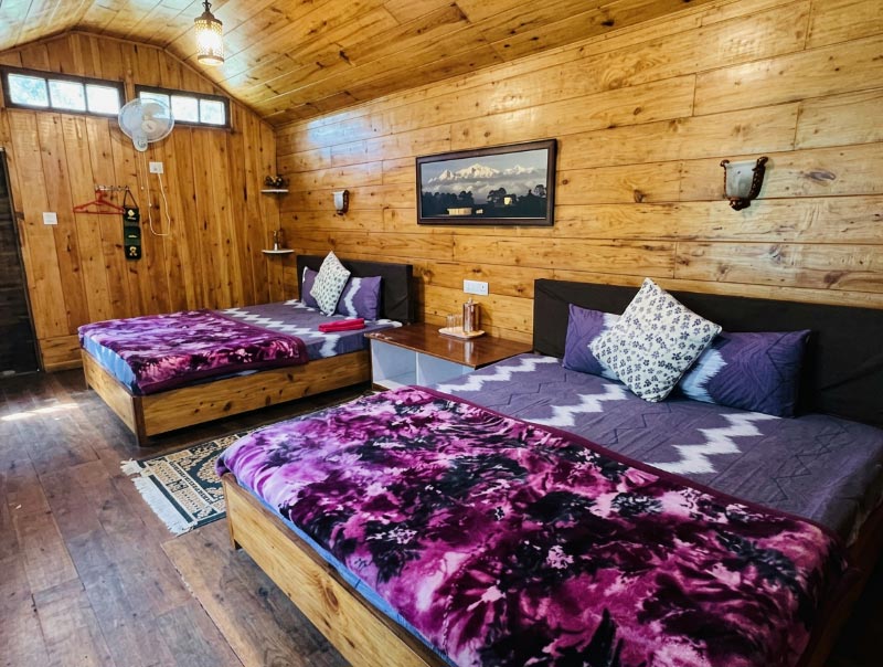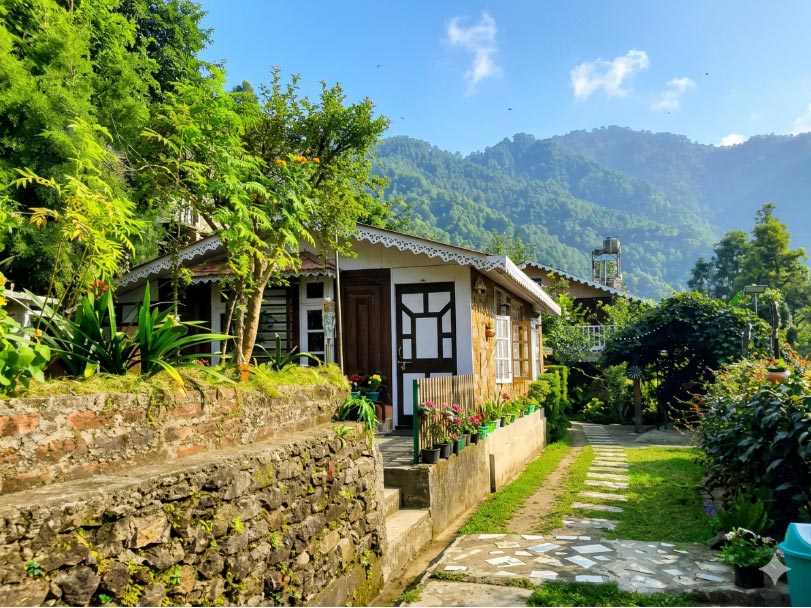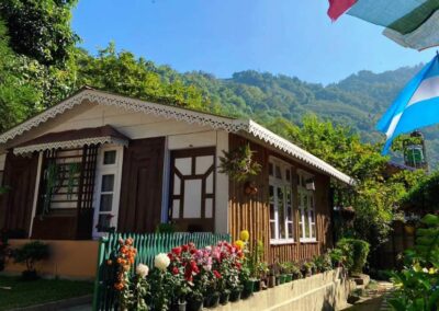 Choosing an authentic homestay over a traditional hotel is the best way to experience the true essence of Himalayan hospitality. At our homestay, guests are welcomed into rooms featuring the natural warmth of wooden floors and comfortable bedding, ensuring a restful stay. We offer 03 Family Rooms, each equipped with modern western-style bathrooms and hot water. The true highlight, however, is the view: large windows and sprawling garden gazebos provide panoramic vistas of emerald tea gardens, lush forests, and the snow-capped Himalayan peaks. The experience extends to the dining room, where we prioritize a farm-to-table approach. Our kitchen serves fresh, locally sourced organic ingredients, offering guests the simple, healthy joys of homemade mountain cuisine.