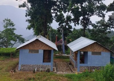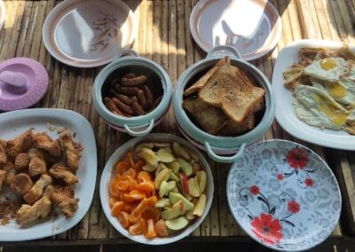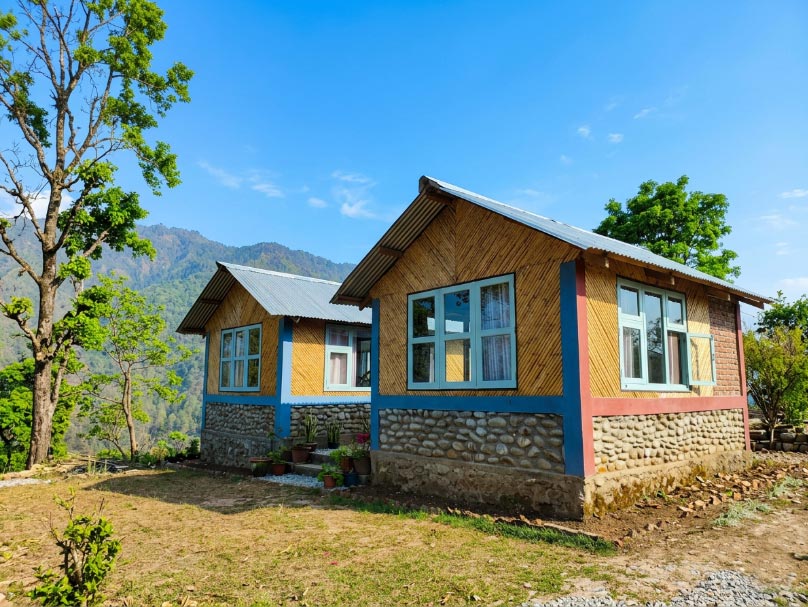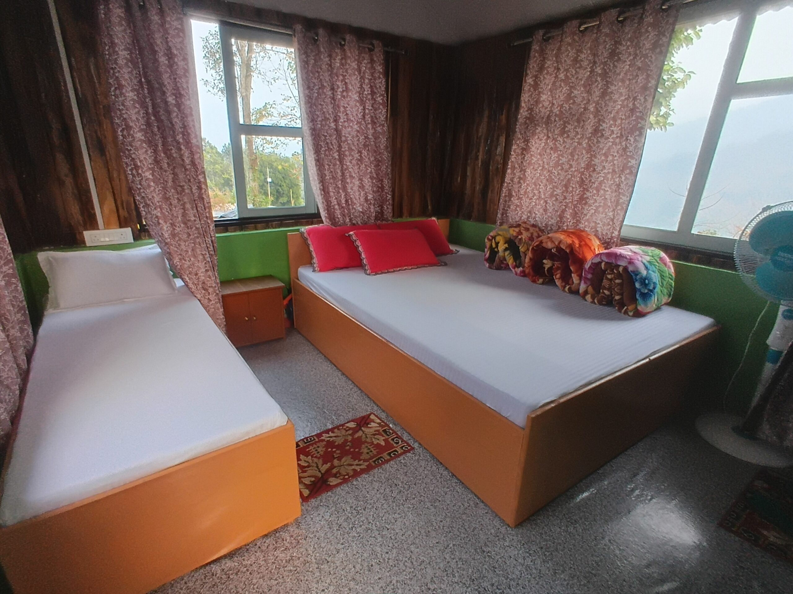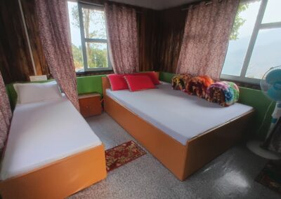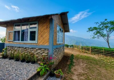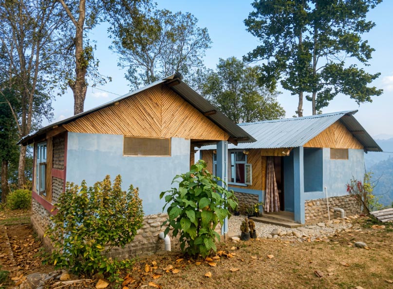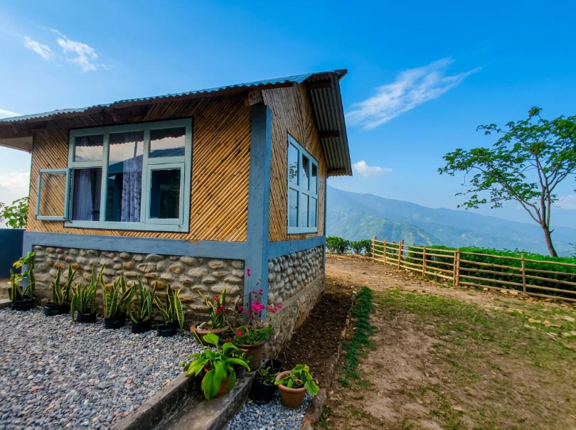 Our homestay features 02 cottages in triple occupancy perched on a hilltop surrounded by tea gardens and forests. Both cottages are equipped with western-style bathrooms, hot water arrangements and comfortable bedding and window view of mountains and tea gardens. Guests can enjoy panoramic views of the forest and snow-capped peaks directly from our homestay. Our kitchen prioritizes organic, locally sourced ingredients, served in a dedicated dining room. To enhance your stay, we offer guided forest treks, local sightseeing in our private vehicle, and evening campfires complete with barbecue.