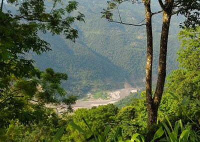 The surrounding landscape of Singla Gaon is a tapestry of tea gardens, meandering rivers and forests, each offering a unique glimpse into the natural and cultural soul of the Eastern Himalayas. Perhaps the most tranquil of these is Ranibon Forest, situated just 04 kilometers away. A short hike in this forest would take you to an isolated tranquil temple and meditation area beside a forest stream. Here, the silence of the ancient trees is broken only by the wind and the water gushing through the rocks and rvaines, providing a majestic frame for attaning inner peace.